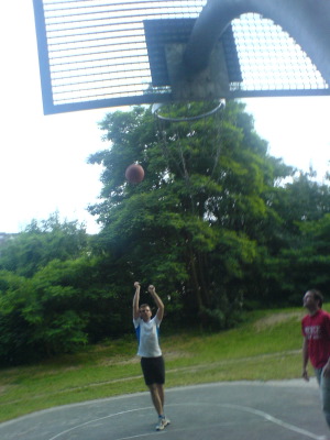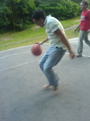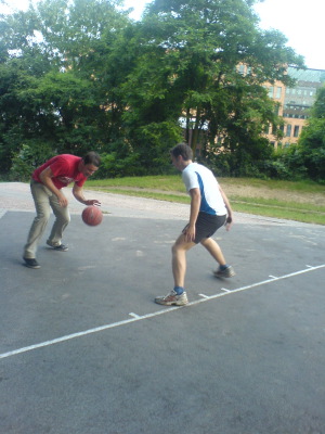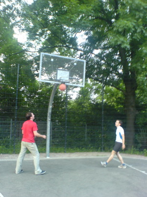 Steven Hunter im Gegenangriff im Hintergrund Jorge Garbajosa schon auf Defense eingestellt